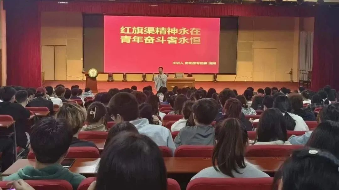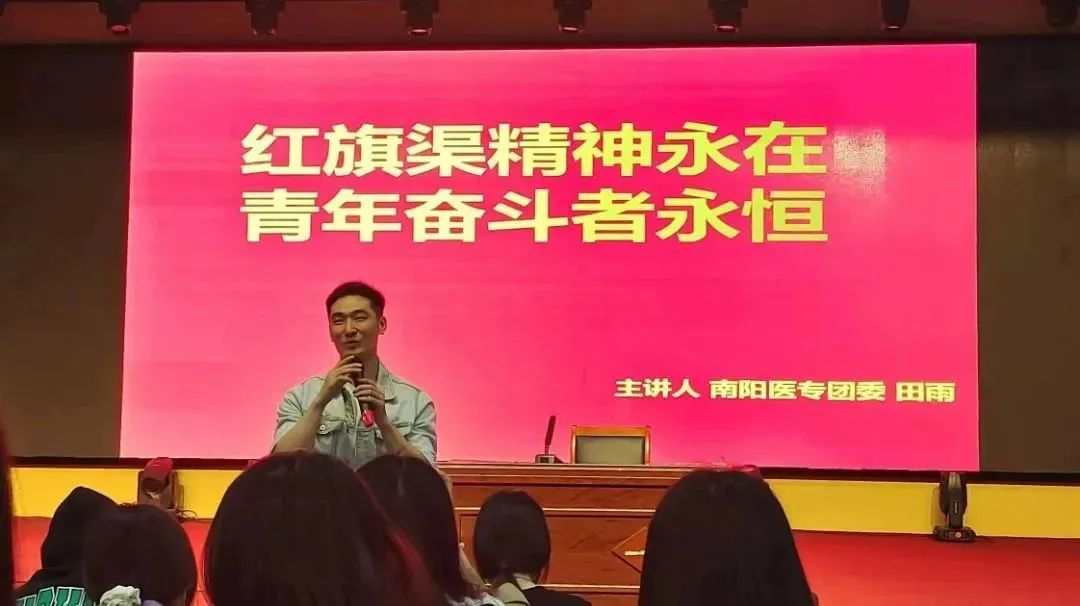 团委副书记田雨以“红旗渠精神永在青春奋斗者永恒”为主题,结合党的二十大精神,从红旗渠精神的内涵、红旗渠修建的历史背景、红旗渠修建的艰苦历程和红旗渠精神引领青年奋进新征程四个方面,通过生动而鲜活的平凡故事讲述不平凡的奋斗历程,号召青年学生们弘扬“自力更生、艰苦创业、团结协作、无私奉献”的红旗渠精神,引导广大青年深入学习贯彻党的二十大精神,勇做新时代的奋进者、开拓者。深入浅出、通俗易懂的宣讲,让同学们领会了思想要义、开拓了视野眼界、丰富了精神境界。