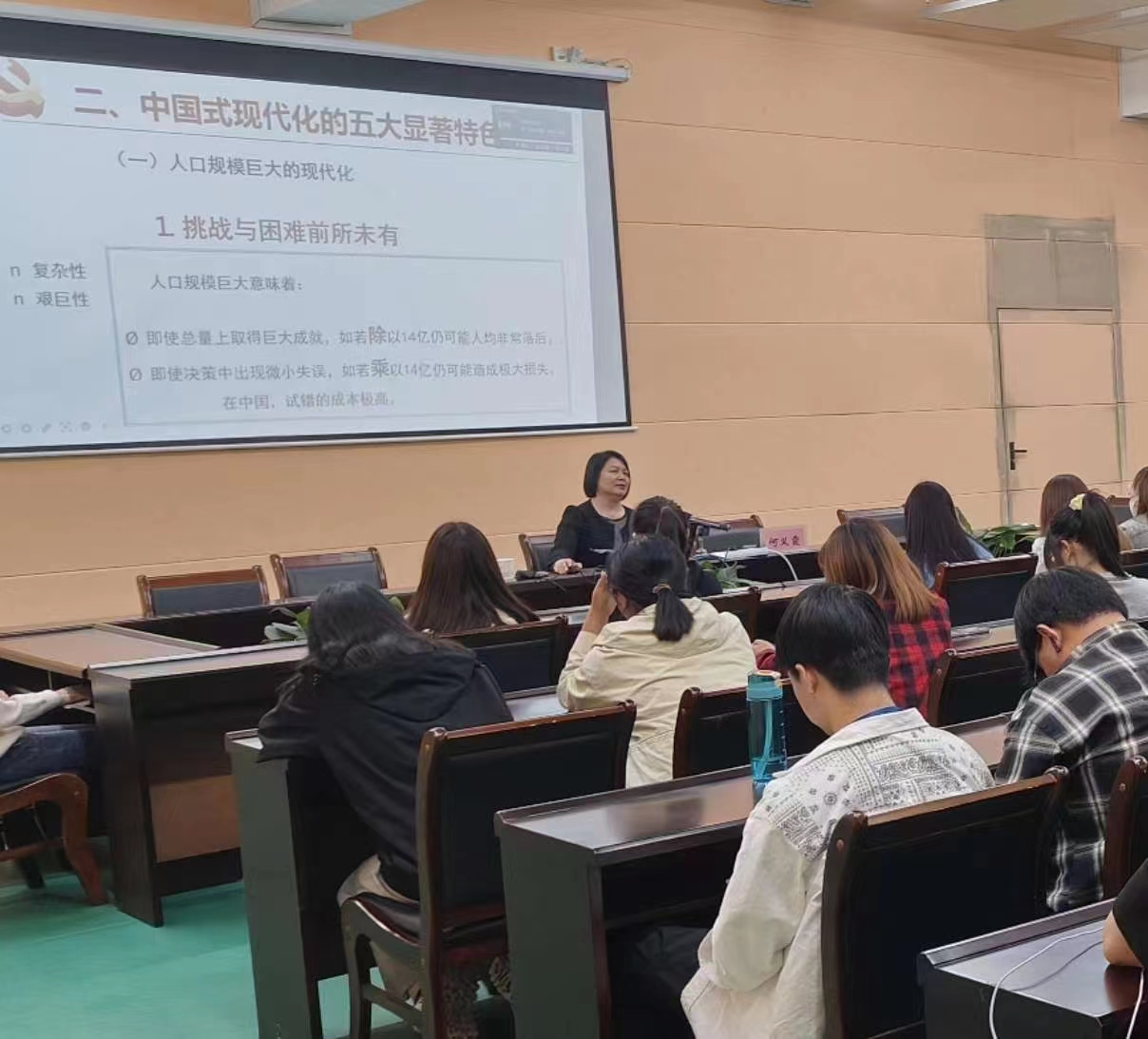 本次理论培训何义霞副院长以《深入理解中国式现代化的科学内涵》为题目,阐述了党的二十大报告提出的新观点、新论断、新思想,并从中国现代化探索和建设历程、中国式现代化五大显著特色、中国式现代化的本质要求和青年在全面建设社会主义现代化国家新征程中要奋力拼搏四个方面对中国式现代化道路进行了深入解读。