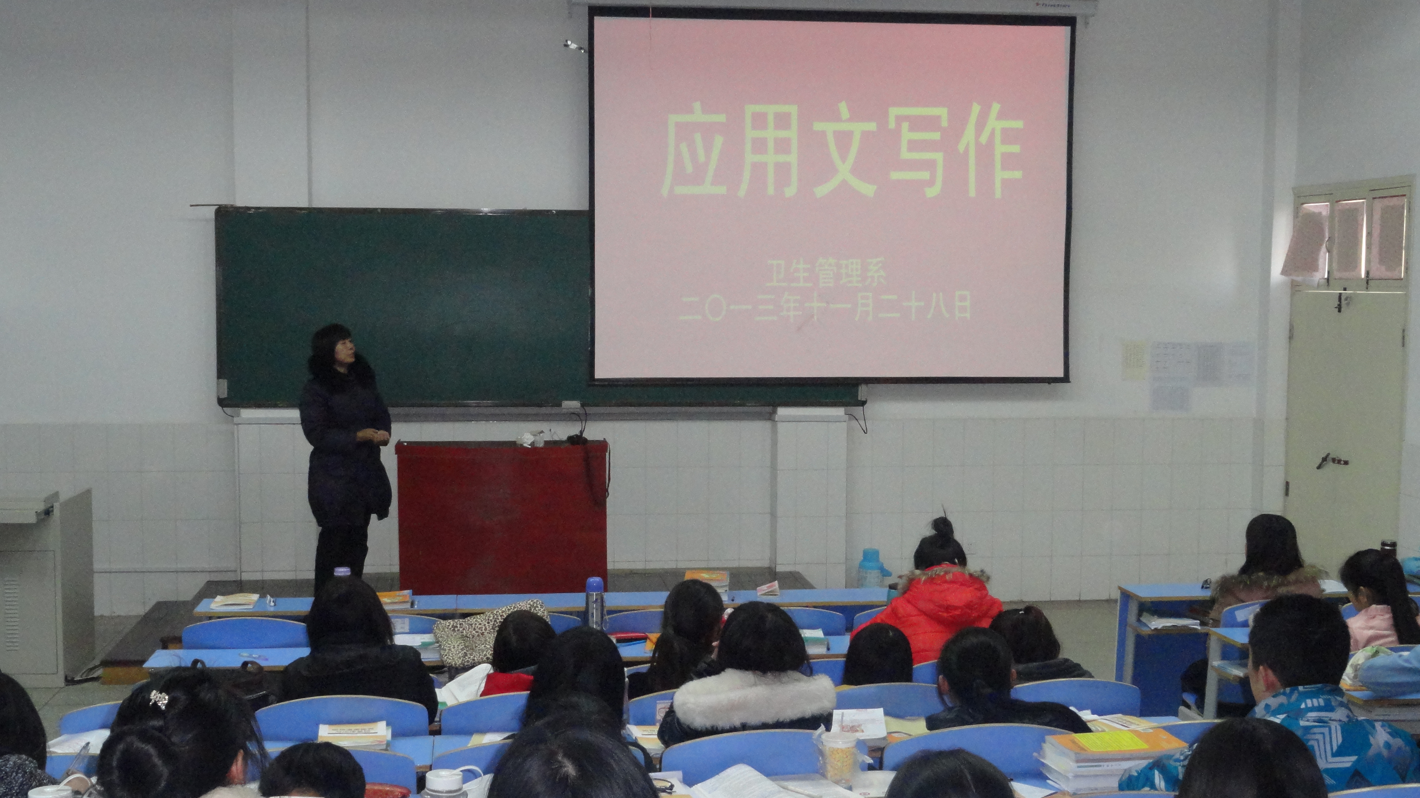 为全面提升同学们的写作素养,应广大学生的要求,卫生管理系自11月份以来在主校区四号教学楼举办了三场“写作指导”系列专题讲座。