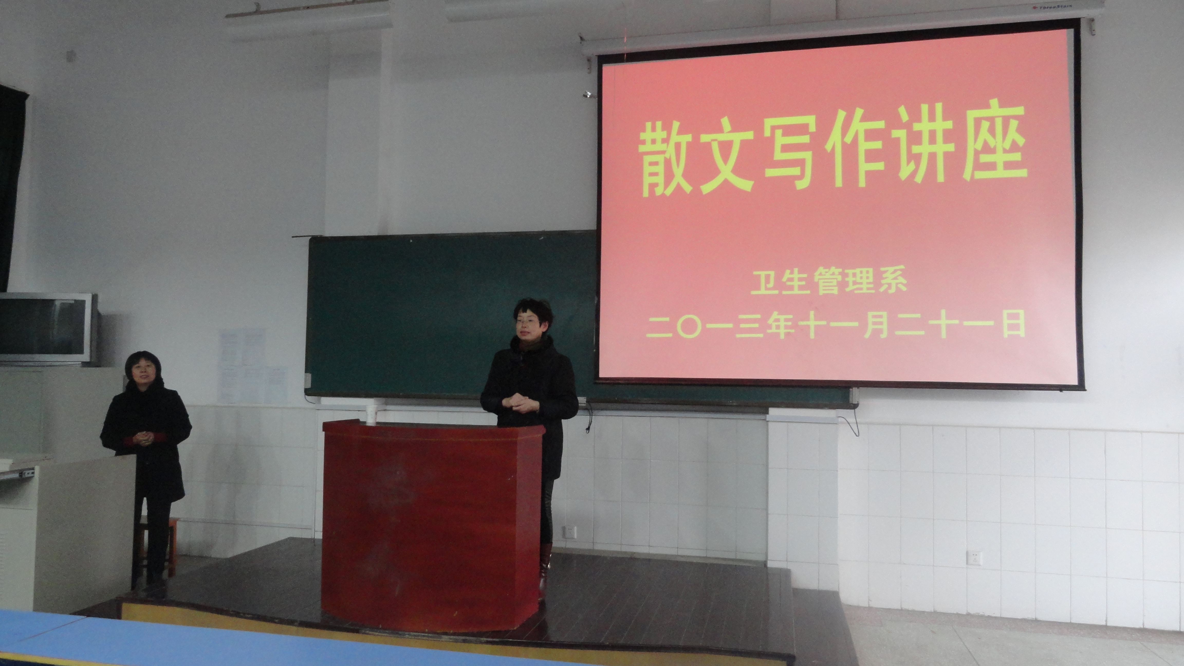 老师以及卫管系13级新生参加了专题讲座。两次专题分别是“散文写作指导”、“应用文写作指导”。