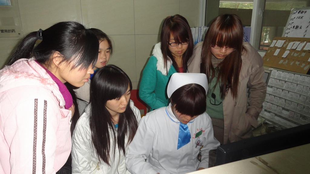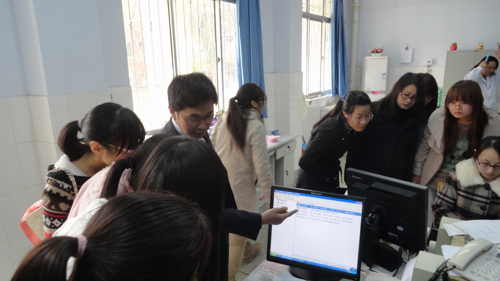 下午,由系教务办公室组织辅导员和任课教师带领全系学生到一附院医技楼信息科参观学习,受到信息科人员的热情接待。首先,由信息科工作人员就医院的HIS系统建设情况给同学做了详细说明,指出电子病历是目前医院发展和应用的重点,当前我省各级医院都正在建设各种卫生信息管理系统,未来几年内将需要大量的既懂医院管理又懂现代信息技术的卫生信息管理专业人才,这将会为我系学生就业提供广阔空间。然后,由信息科工作人员带领各组学生参观学习了HIS系统机房设施、门诊收费工作站、护士工作站、医生工作站等信息系统终端使用情况。