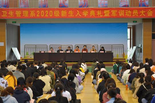 10月12日上午,卫生管理系2020级新生入学典礼暨军训动员大会在学校体育馆顺利举办。系领导班子、2020级班主任、全体新生参会。大会由系党政办主任董菡主持。