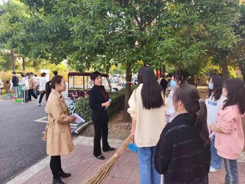 11月2日,党委委员、副校长范真带领学校“三个联系”第七工作组深入卫生管理系分包卫生区,与全系师生一起开展文明校园卫生创建活动。
