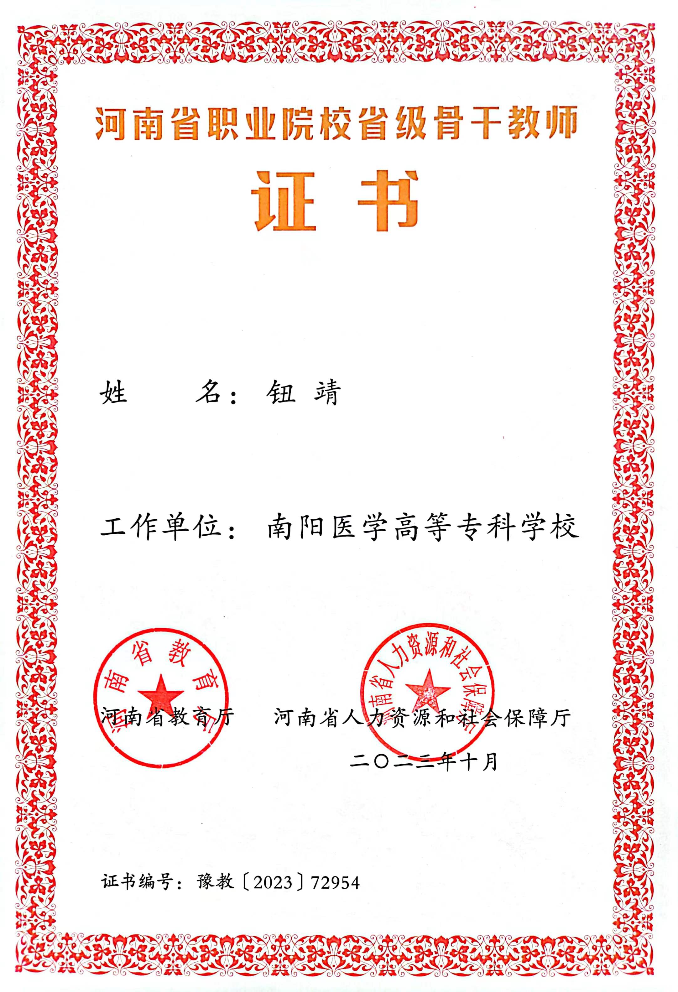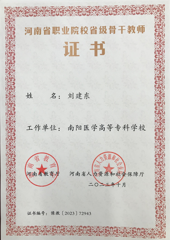 近日,河南省教育厅、河南省人力资源和社会保障厅发布《关于公布2021年河南省职业院校省级名师和省级骨干教师培育期满考核结果的通知》(教职成〔2023〕350号),经学校自主考核,河南省教育厅、河南省人力资源和社会保障厅组织专家综合审核、网站公示,我系钮靖、刘建东、李国正三位教师被认定为河南省职业院校省级骨干教师。