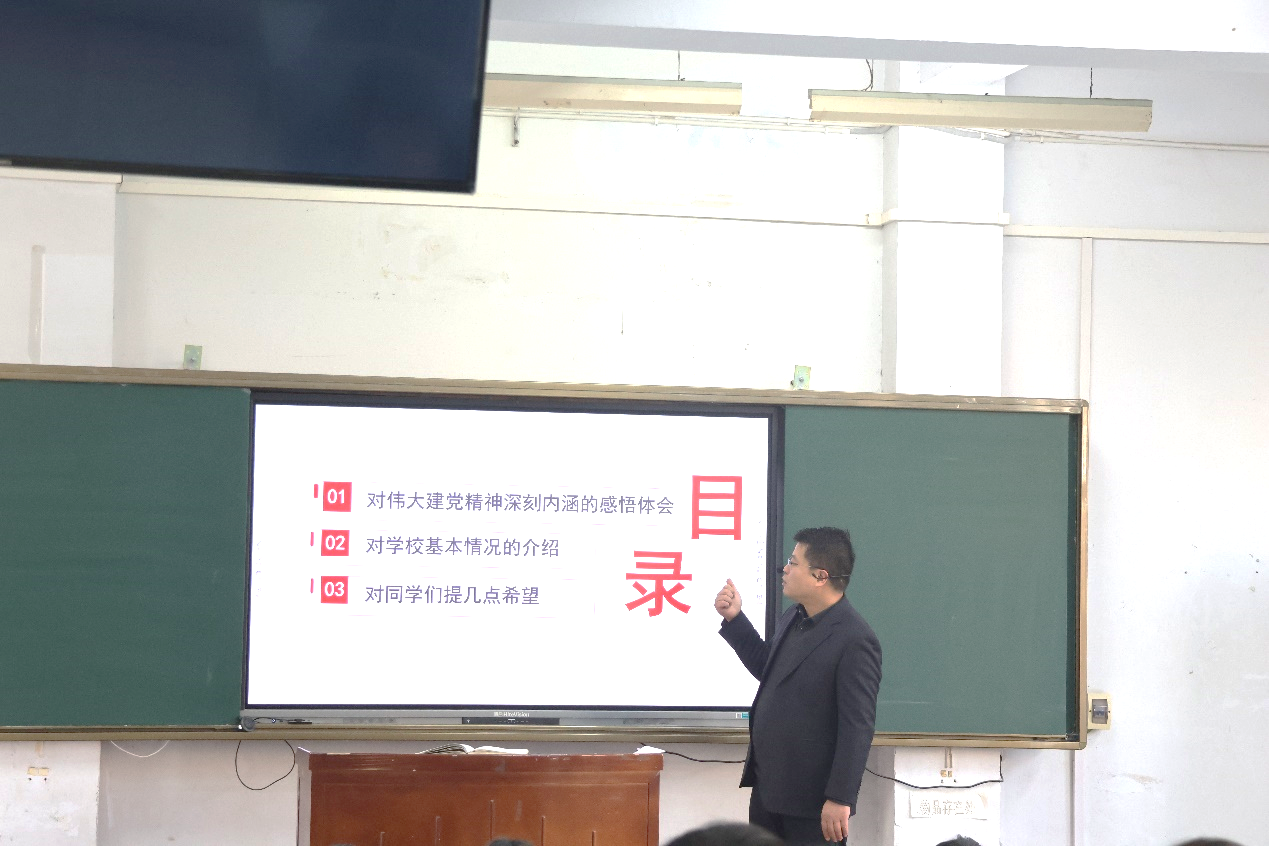 刘涛以“传承建党精神 赓续红色血脉 争做堪当民族复兴大任的时代新人”为题,从“学习伟大建党精神的深刻感悟和体会、学校发展情况、对大学生寄予的希望”三个部分进行讲授。课堂教学中,刘书记从一张邮票开始讲起,为学生们展示了一张“《共产党宣言》中文全译本出版一百周年”纪念邮票,讲述了“真理的味道非常甜”背后的陈望道翻译《共产党宣言》时的感人故事,通过“案例分析”和“问题驱动”等方法从伟大建党精神的政治灵魂、根本宗旨、基石底座、庄严承诺等四个方面引导学生们深刻领悟伟大的建党精神的科学内涵。最后,刘涛向学生们提出四点殷切期望:坚定理想信念,明确人生目标;努力学习知识,注重社会实践;尽心尽力投入,善于反思总结;厚植家国情怀,发扬奉献精神。