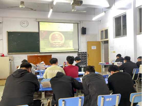 各班学生集中收看