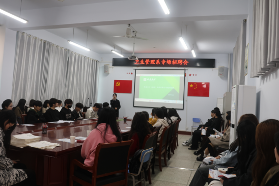 为切实做好2024届毕业生就业工作,拓宽毕业生就业渠道,促进毕业生顺利就业,卫生管理系4月2上午10点,在厚德楼三楼会议室召开专场招聘会,我系2024届毕业生参加了会议