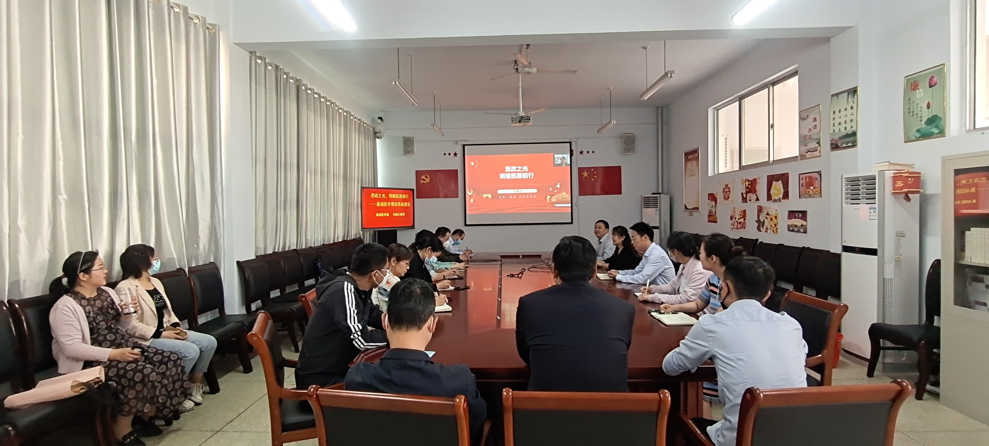 培训主题为《思政之光,照耀医路前行——基础医学课程思政建设》,马瑜红教授主要从四个方面展开详细讲解:一是课程思政的解读分析;二是课程思政的有效开展;三是课程思政建设实践;四是以在线课程推动课程思政建设。