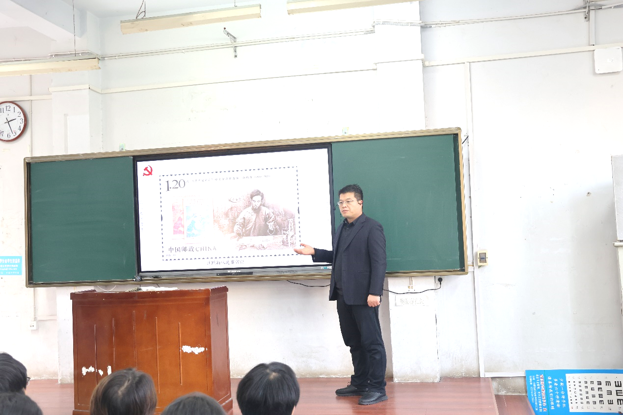 刘涛以“传承建党精神 赓续红色血脉 争做堪当民族复兴大任的时代新人”为题,从“学习伟大建党精神的深刻感悟和体会、学校发展情况、对大学生寄予的希望”三个部分进行讲授。课堂教学中,刘书记从一张邮票开始讲起,为学生们展示了一张“《共产党宣言》中文全译本出版一百周年”纪念邮票,讲述了“真理的味道非常甜”背后的陈望道翻译《共产党宣言》时的感人故事,通过“案例分析”和“问题驱动”等方法从伟大建党精神的政治灵魂、根本宗旨、基石底座、庄严承诺等四个方面引导学生们深刻领悟伟大的建党精神的科学内涵。最后,刘涛向学生们提出四点殷切期望:坚定理想信念,明确人生目标;努力学习知识,注重社会实践;尽心尽力投入,善于反思总结;厚植家国情怀,发扬奉献精神。