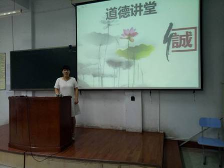 期末将至,卫生管理系为帮助同学们进入复习状态,树立良好的考风、考纪,进一步规范学校考试工作,2017年6月20晚在一号教学楼104教室举行以“诚信教育”为主题的道德讲堂活动。
