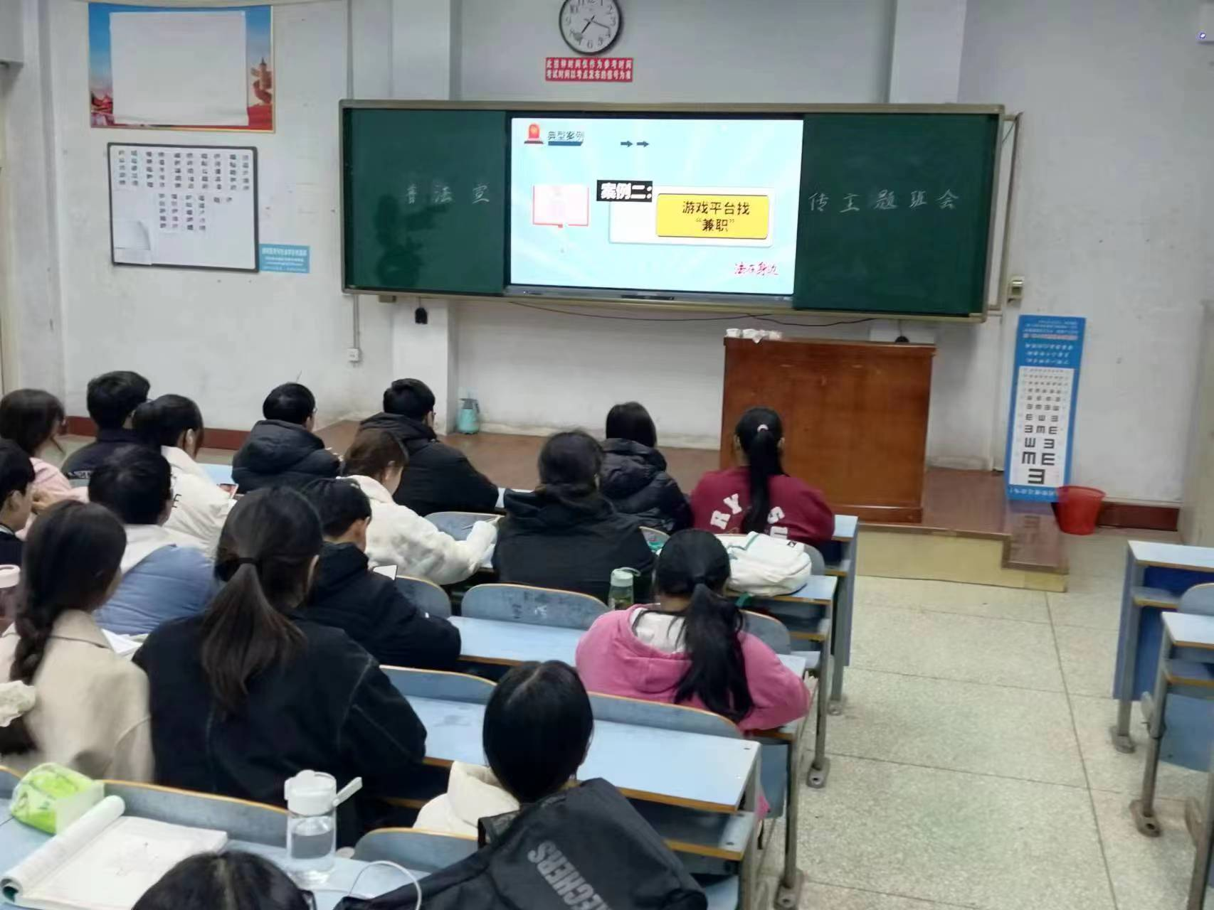 为了深入推进普法教育工作,培养新青年的法治思想,提升我系学生依法办事的素养和能力,培养学生的法律意识和法治观念,营造尊法、学法、守法、用法的良好校园环境。11月20日晚,我系组织各班观看“别当犯罪分子的帮凶”普法宣传片,并召开普法宣传主题班会,引导新时代大学生不断提高自我保护的能力,树立良好的法律意识。