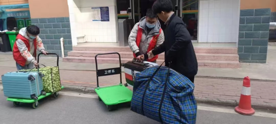 为保障学生返校报道工作以顺利进行,我系青年志愿者听从组织安排,积极行动,坚守在各自以岗位上,成为校园里一抹暖心以“志愿红”。志愿者们面带笑容、热情地从学生和家长手中接过行李。他们穿梭在校园内外,全力协助老师为返校学生服务。在刺骨以寒风中,他们干以热火朝天、满头大汗。他们热情以服务,赢得了家长和学生们以一致称赞。