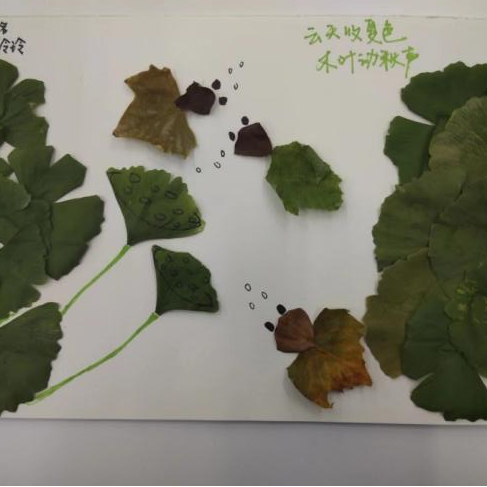将一片片落叶悄然拾起,通过剪、切、拼接、粘贴等,变成一件件精美的工艺品,让落叶重获生机、微笑如初,让小落叶有大乐趣。栩栩如生的作品足以展现出同学们对作品的重视和对此次活动的兴趣,尽管“自古逢秋悲寂寥”,但是同学们的热情却是丝毫不减,是活力四射的大学生没错了。