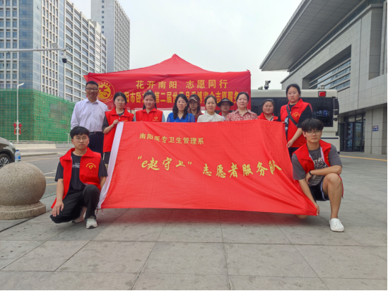 为做好 2024 年第二届世界月季博览会志愿服务工作,发挥志愿者在服务重大节庆中的积极作用,促进志愿服务工作深入有效开展。2024年4月27日下午,卫生管理系9名志愿者在学生处副处长古婵婵、党总支副书记钮靖、董菡,学工办主任何伟峰的带领下,前往南阳火车站进行志愿服务。