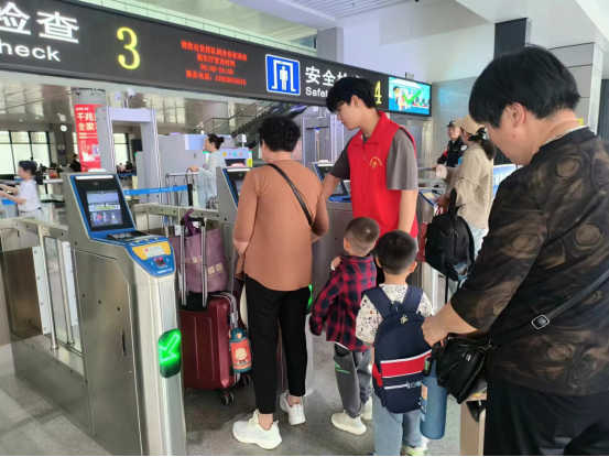 在志愿服务活动开始前,带队老师对参加志愿服务的同学进行了相关的培训和指导,9名志愿者分成两批在进站口和出站口为游客提供志愿服务。