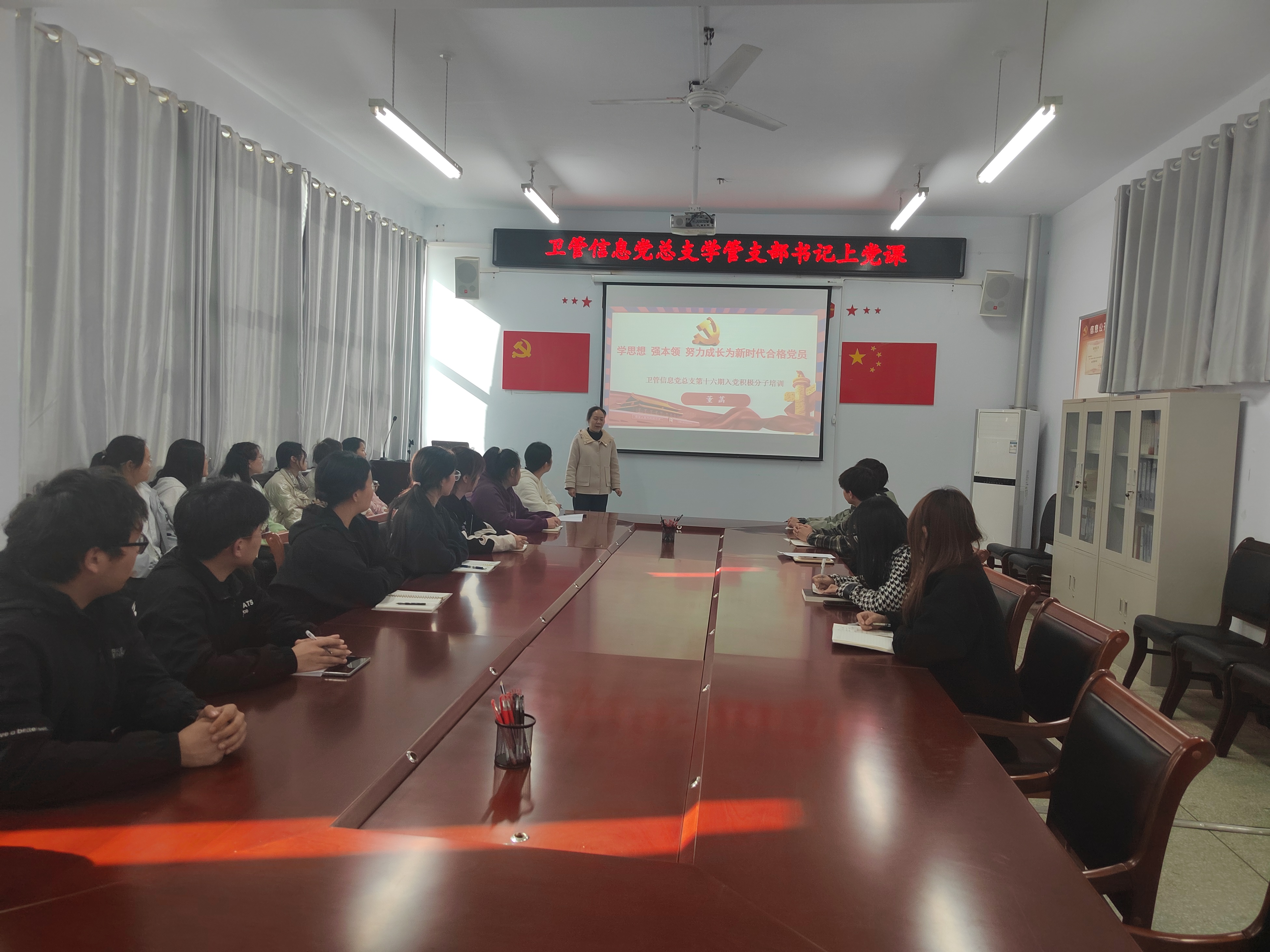 为加强入党积极分子对党的基本理论知识的学习,使入党积极分子深化对党的认识,明确党员权利义务,端正入党动机,3月28日下午,卫管信息党总支在厚德楼三楼党员活动室举行第十六期入党积极分子培训班开班典礼暨开班第一课。学管支部书记董菡、纪检委员何伟峰、组织委员王一帆及培训班全体学员参加本次活动。