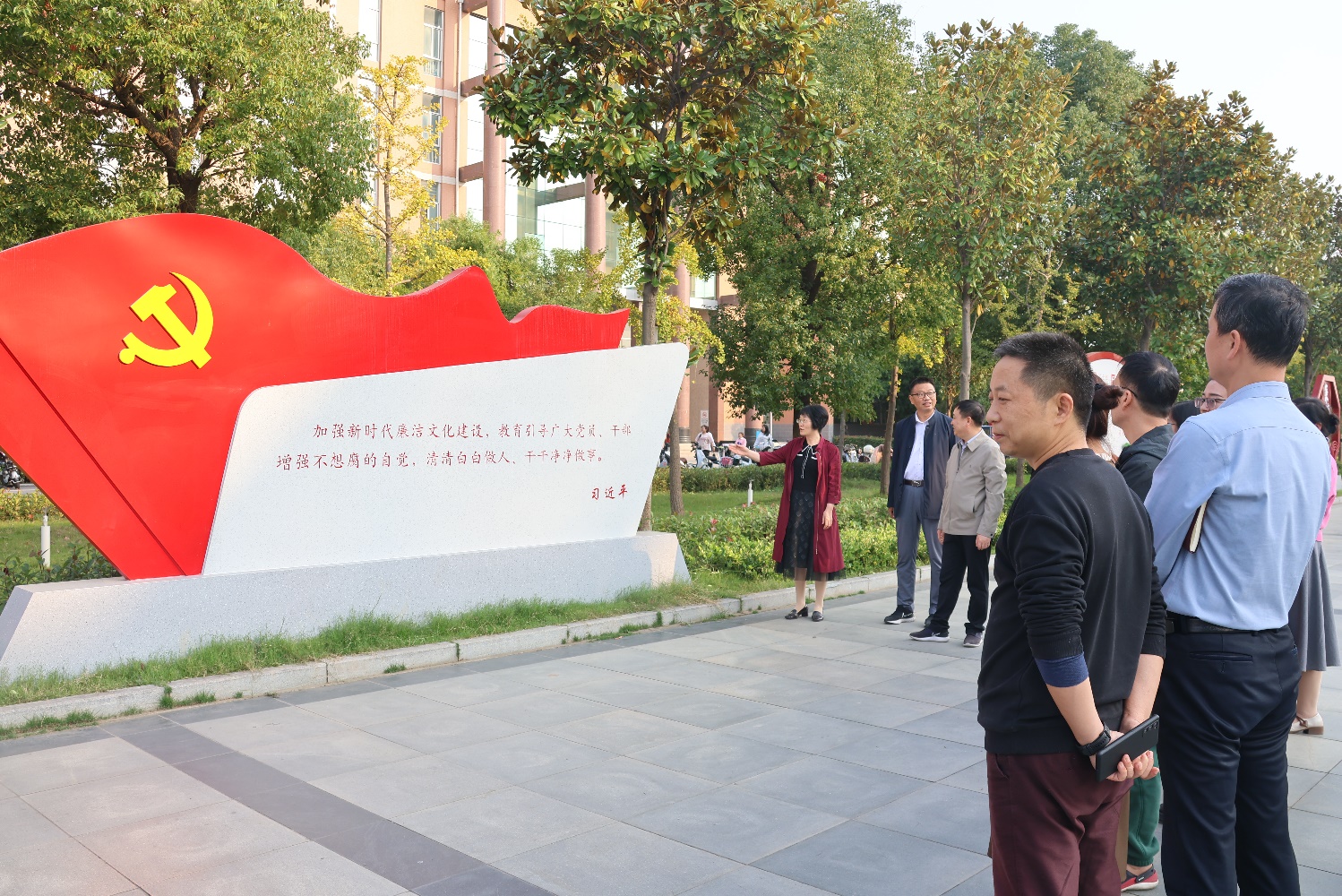 会后,组织全体党员干部参观学校仲景西区廉政文化 广场,信息管理中心主任孙智蔚、卫生管理系主任黄永毅,分别向大家讲述了学校建设廉政文化广场的初衷、背景、建设理念和主要内容,并邀请大家抽出时间参观位于学校仲景东区廉心湖廉洁文化长廊、警示教育基地等廉政文化阵地。