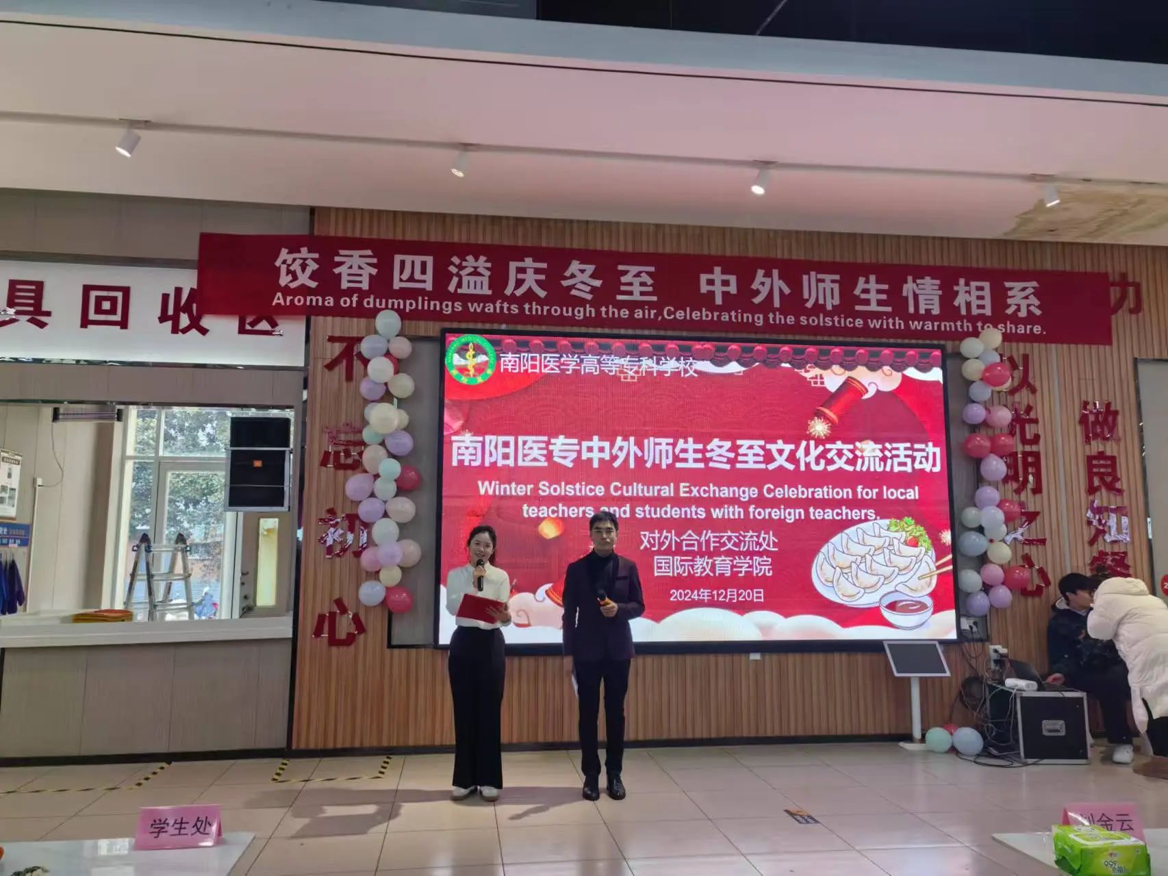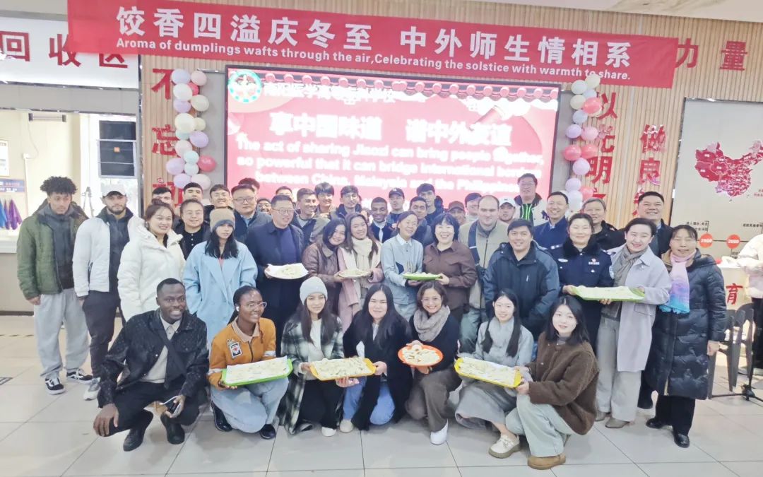 冬至大如年,人间小团圆。12月20日,我校在仲景西区育贤斋餐厅一楼举办“中外师生冬至文化交流”活动,校党委委员、纪委书记刘金云,党委委员、工会主席杜晓平出席,校党委宣传部、离退处、校工会、学生处、对外交流合作处、国际教育学院等部门负责人及全体来华外籍教师与留学生,学院师生代表参与活动。