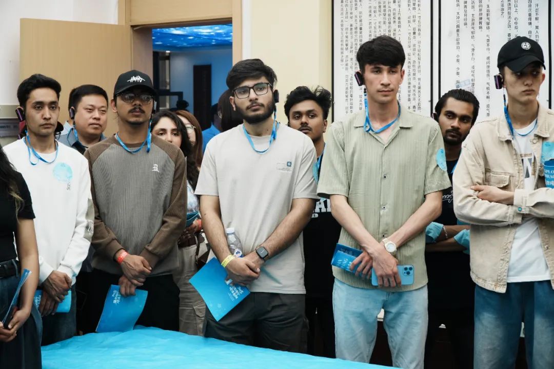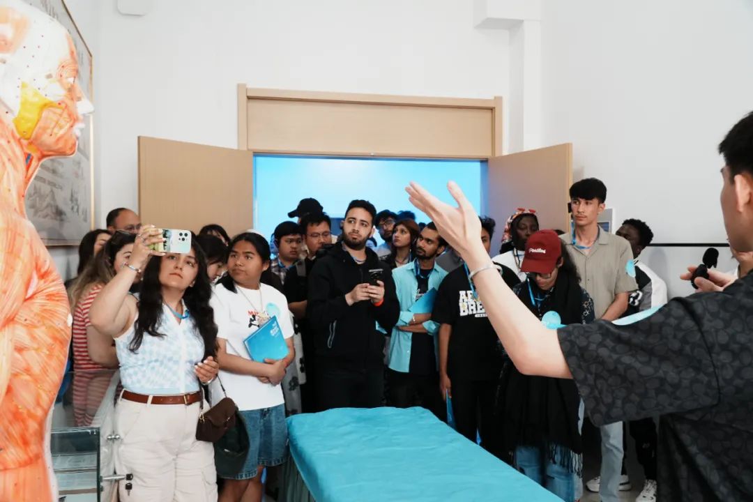随着互动环节的展开,中外学生结成小组,尝试练习简单的推拿动作。人群当中,有的认真领会动作要领,有的相互纠正推拿手法,南阳医学高等专科学校中医药科技馆中不时传来一阵阵笑声和掌声。语言不同,但动作相通,这场青春洋溢的“双向奔赴”,不仅让中外学子感受到了中医药文化的独特魅力,也在互动中拉近了彼此间的距离,给他们留下了一段难忘的“校园记忆”。