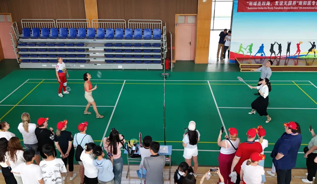 在比赛过程中,中国师生凭借精湛的球技和丰富的比赛经验,在场上灵活应对,展现出沉稳的实力;而国际学生们也毫不逊色,他们带着各自国家独特的运动风格和饱满的热情投入比赛。中外师生不仅在球技上相互切磋,更在交流互动中加深了彼此的了解和友谊。不同肤色、不同语言的师生们,因为羽毛球而紧密相连,在文化的交流与碰撞中,绽放出绚丽的火花。