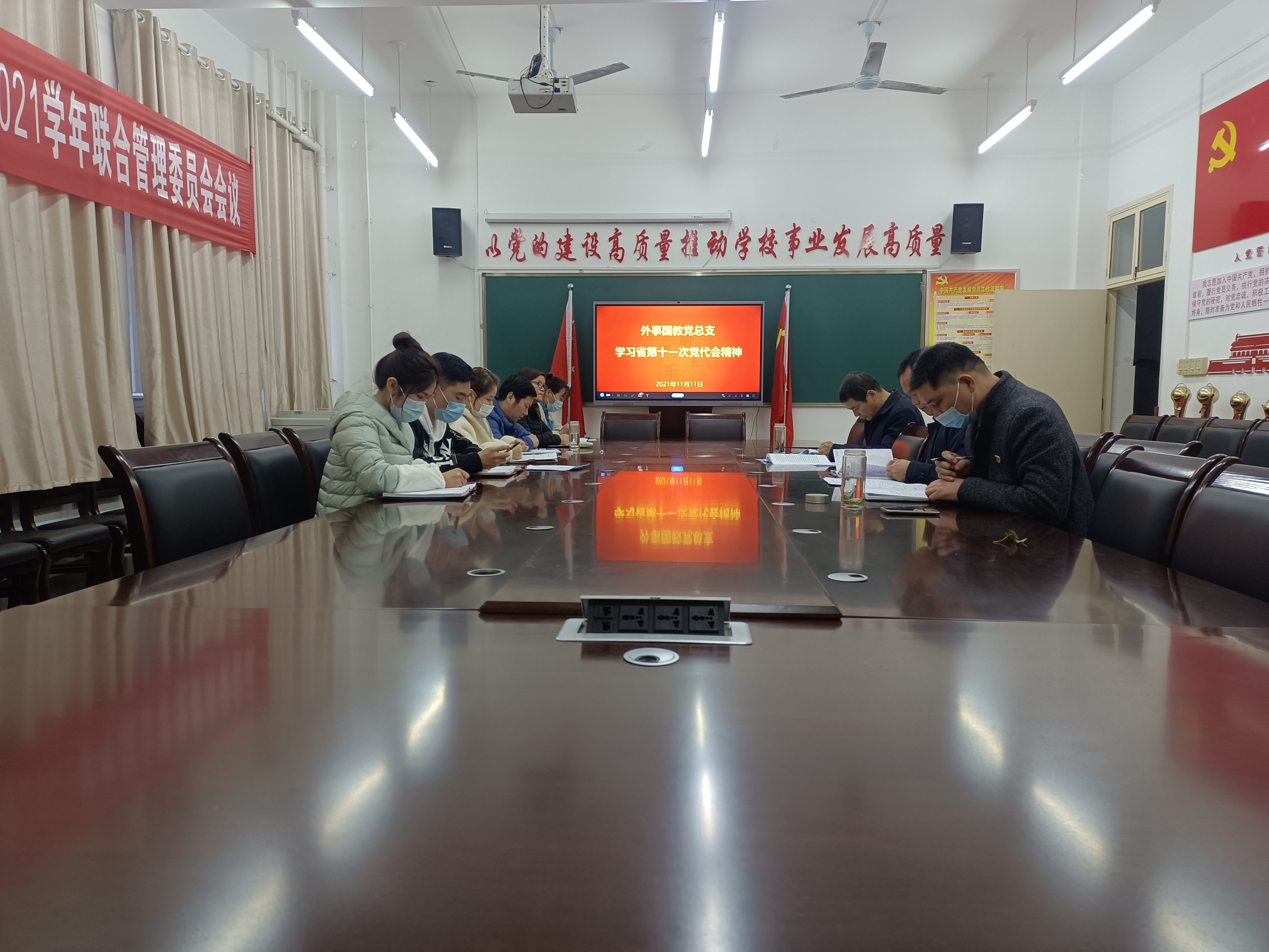 11月11日下午,外事国教党总支在仲景西区三号教学楼423会议室召开专题会议,传达学习河南省第十一次党代会会精神,安排部署贯彻落实工作。外事国教党总支全体党员参加了会议。