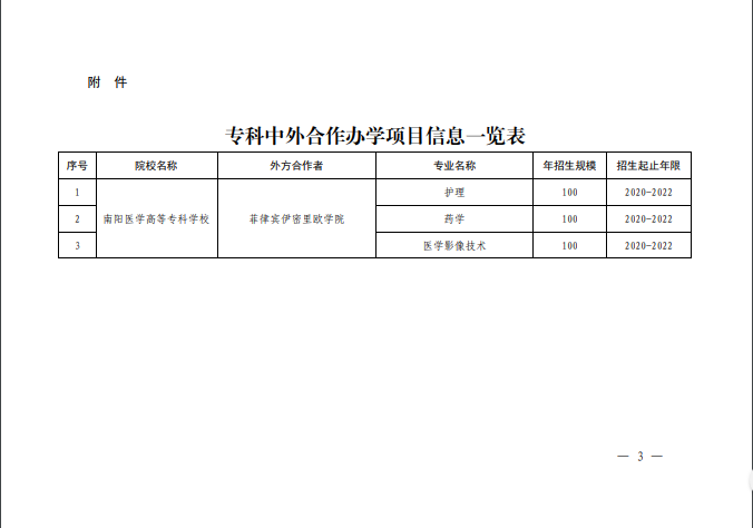 附件:河南省教育厅关于南阳医学高等专科学校专科中外合作办学项目变更事项的批复。