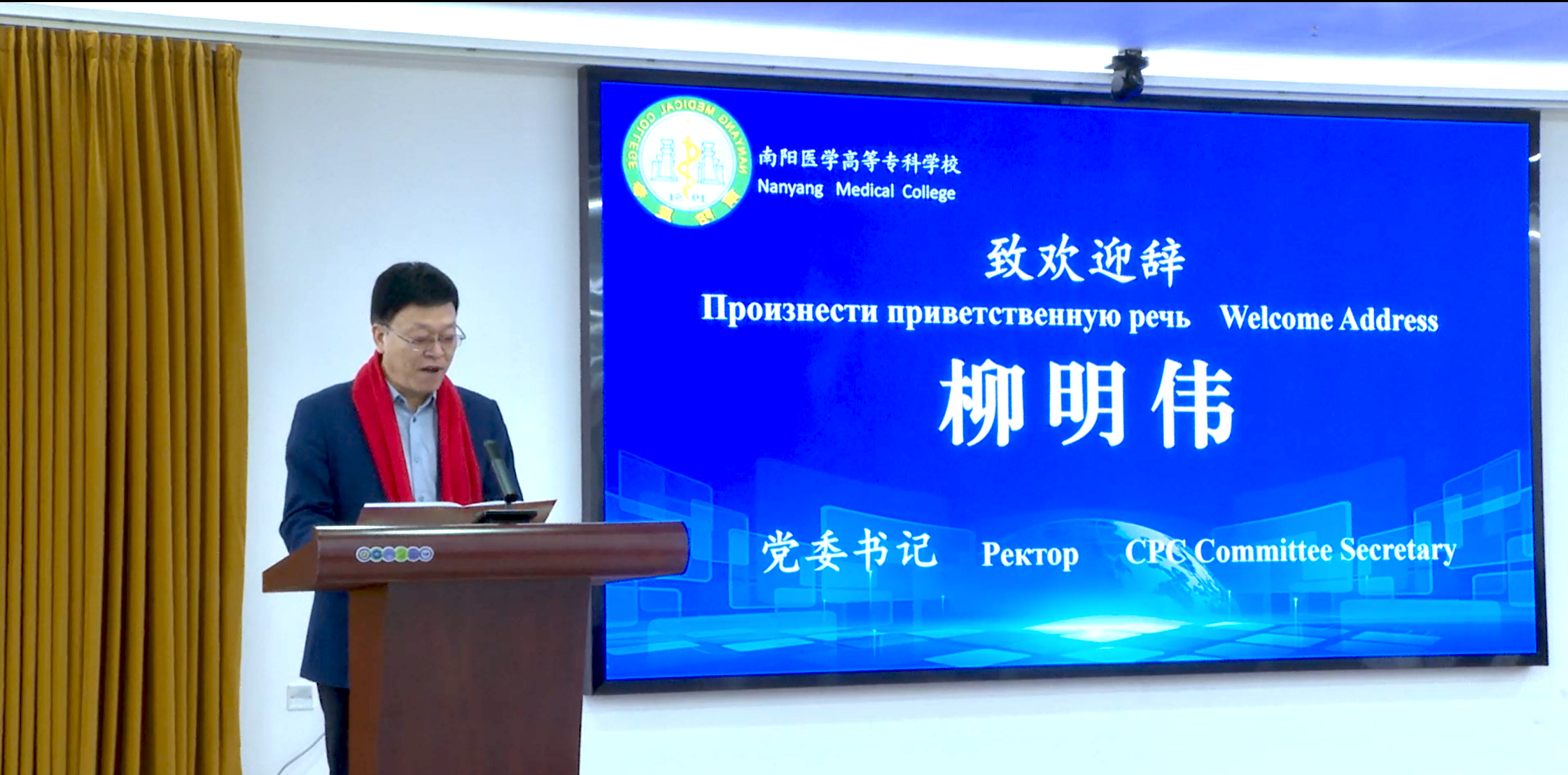 范真欢迎俄罗斯中医药学会第二次来校学习,对俄罗斯学员对我校的信任表示感谢,并宣布南阳医专2025年度首期“仲景工坊”中医适宜技术国际培训正式开班!