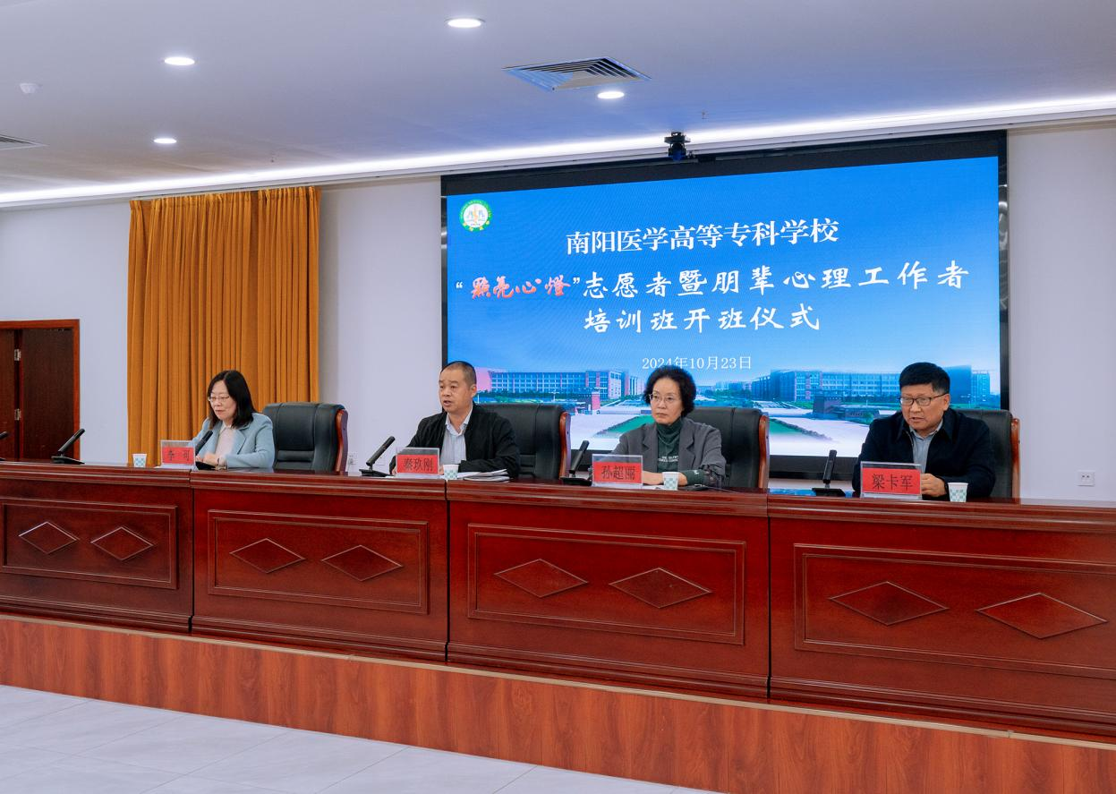 为深入学习贯彻党的二十届三中全会精神,充分发挥朋辈心理力量在心理健康教育四级预警防控工作体系中的积极作用,提升朋辈关怀引领的辐射效能,10月23日下午,心理健康关爱与教育中心组织的“点亮心灯”志愿者暨朋辈心理工作者培训班开班仪式在仲景东区文化中心举行。校党委委员、副校长秦玖刚出席开班仪式并讲话。各系(部、院)党总支副书记、学工办主任、心理专干以及近300名学生朋辈心理人员在现场参加开班仪式,1600余名通过线上观看了仪式。仪式由心理健康关爱与教育中心副主任李可主持。