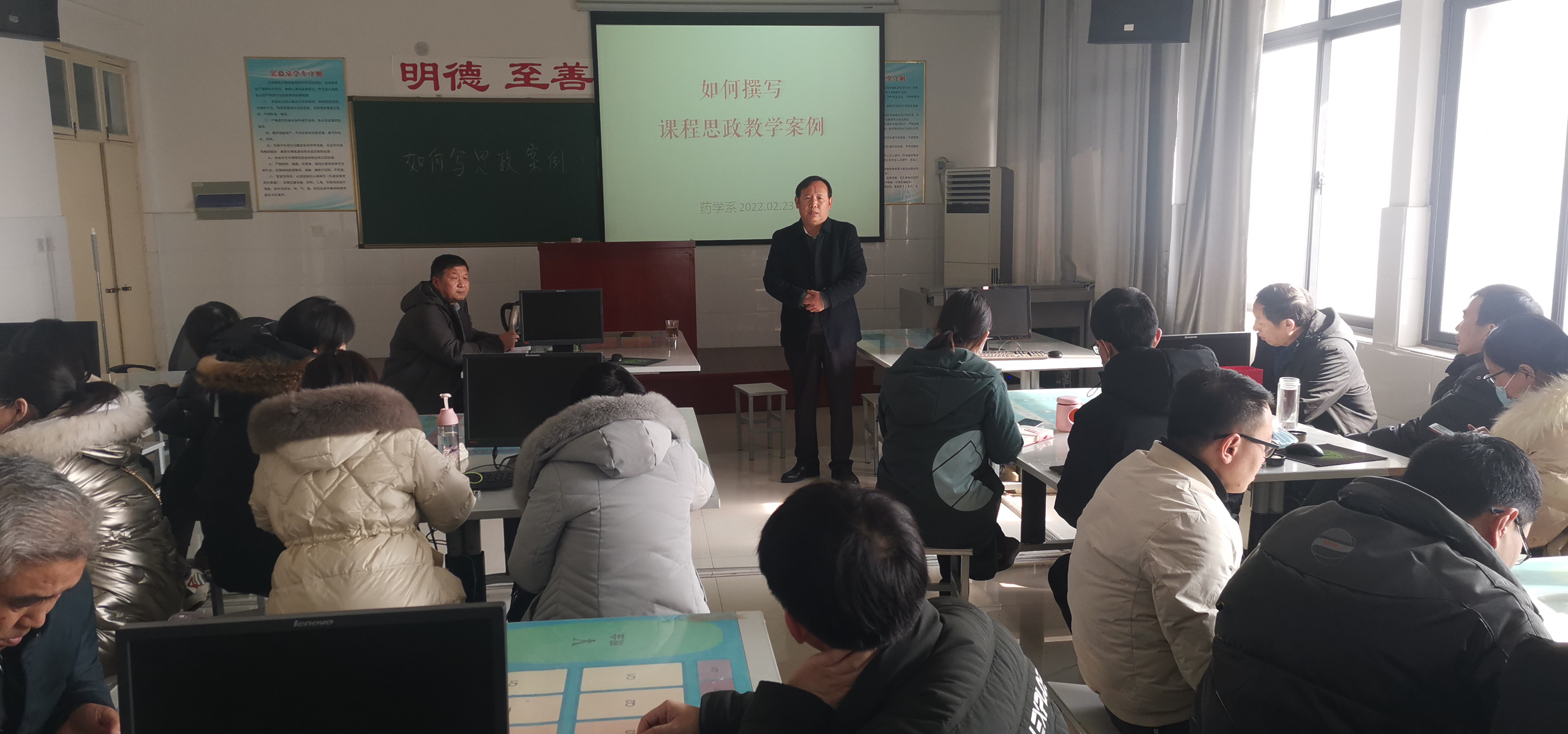 2022年3月11日下午,系领导袁国卿、杨明勋深入药学系教工党支部,为支部全体党员上了一堂题目为《如何撰写课程思政教学案例》的党课,要求教师要利用好课堂教学这个主渠道,在教学过程中融入丰富的思政元素,将思政元素生动地呈现在课堂上,以“润物细无声”形式浸润学生心灵,实现价值塑造、知识传授和能力培养的有机统一,真正落实立德树人根本任务。