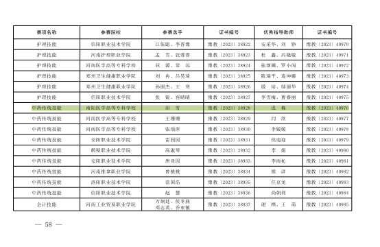 热烈祝贺我系吴杰老师指导的学生赵星花、迟栋老师指导的学生田雪,分别获得2002年河南省高等职业教育技能大赛-中药传统技能竞赛项目一等奖、二等奖。