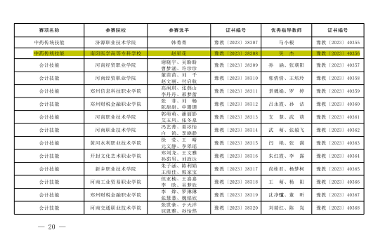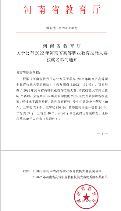 热烈祝贺我系吴杰老师指导的学生赵星花、迟栋老师指导的学生田雪,分别获得2002年河南省高等职业教育技能大赛-中药传统技能竞赛项目一等奖、二等奖。
