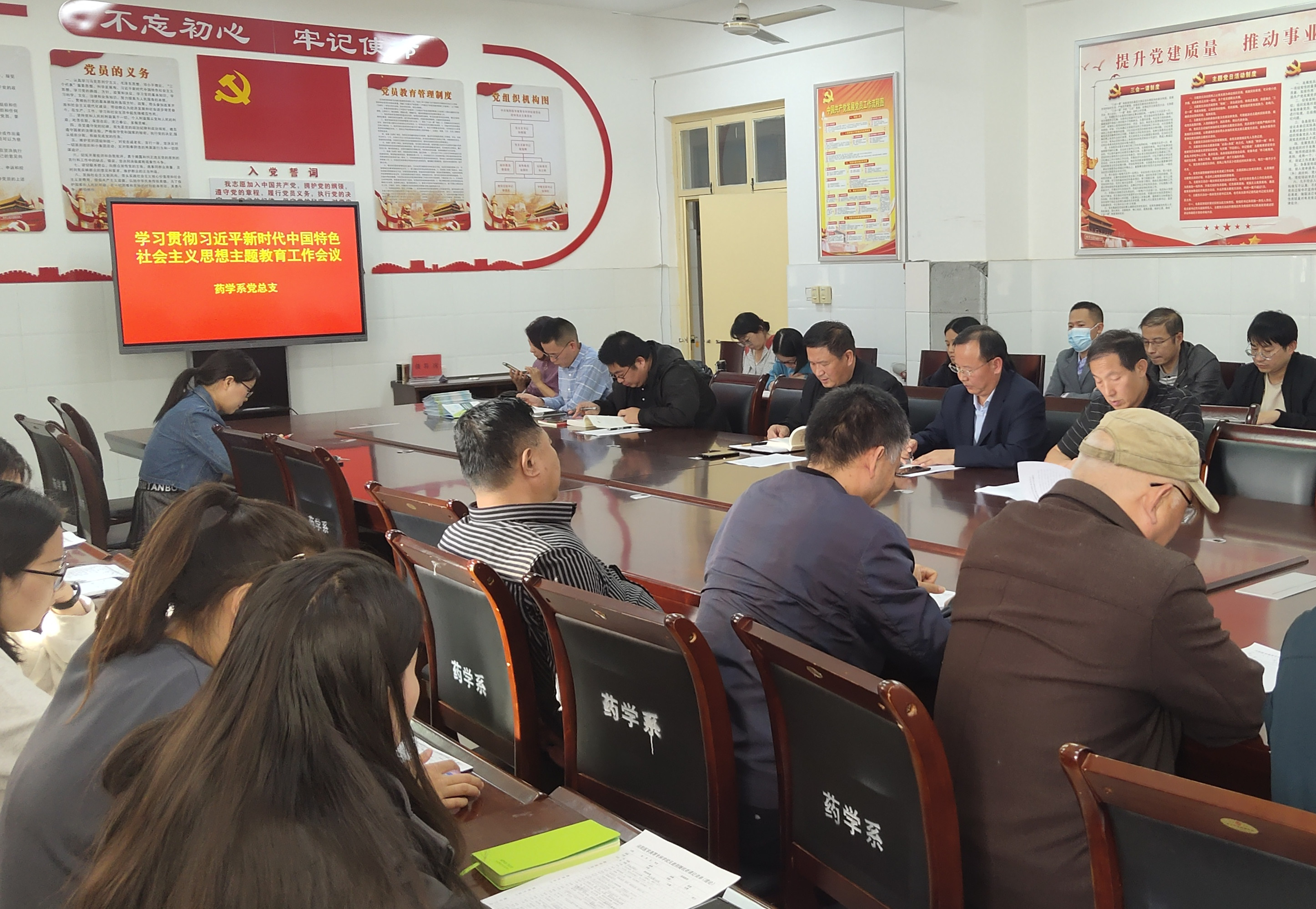 杨书记领学了《中共南阳医专委员会关于印发<在全校党员中深入开展学习贯彻习近平新时代中国特色社会主义思想主题教育的实施方案>的通知》,传达了校党委《关于进一步明确党支部责任,扎实开展基层党组织主题教育的通知》。杨书记指出,要认真贯彻落实校党委副书记刘涛同志到我系调研讲话精神,一要提高政治站位。把开展主题教育作为当前和今后一个时期的重大政治任务抓紧抓实。二要锤炼党性作风。聚焦重点工作、突出问题导向,确保主题教育取得实实在在的成效。三要推动高质量发展。紧紧围绕“1233”工作布局,大力推进“五大工程”建设,切实以高质量发展成效检验主题教育成果。四要依托“三会一课”、主题党日等,采取务实管用、简便易行的措施开展主题教育。加强宣传引导,坚决防止“低级红”“高级黑”,大力营造良好的学习氛围。