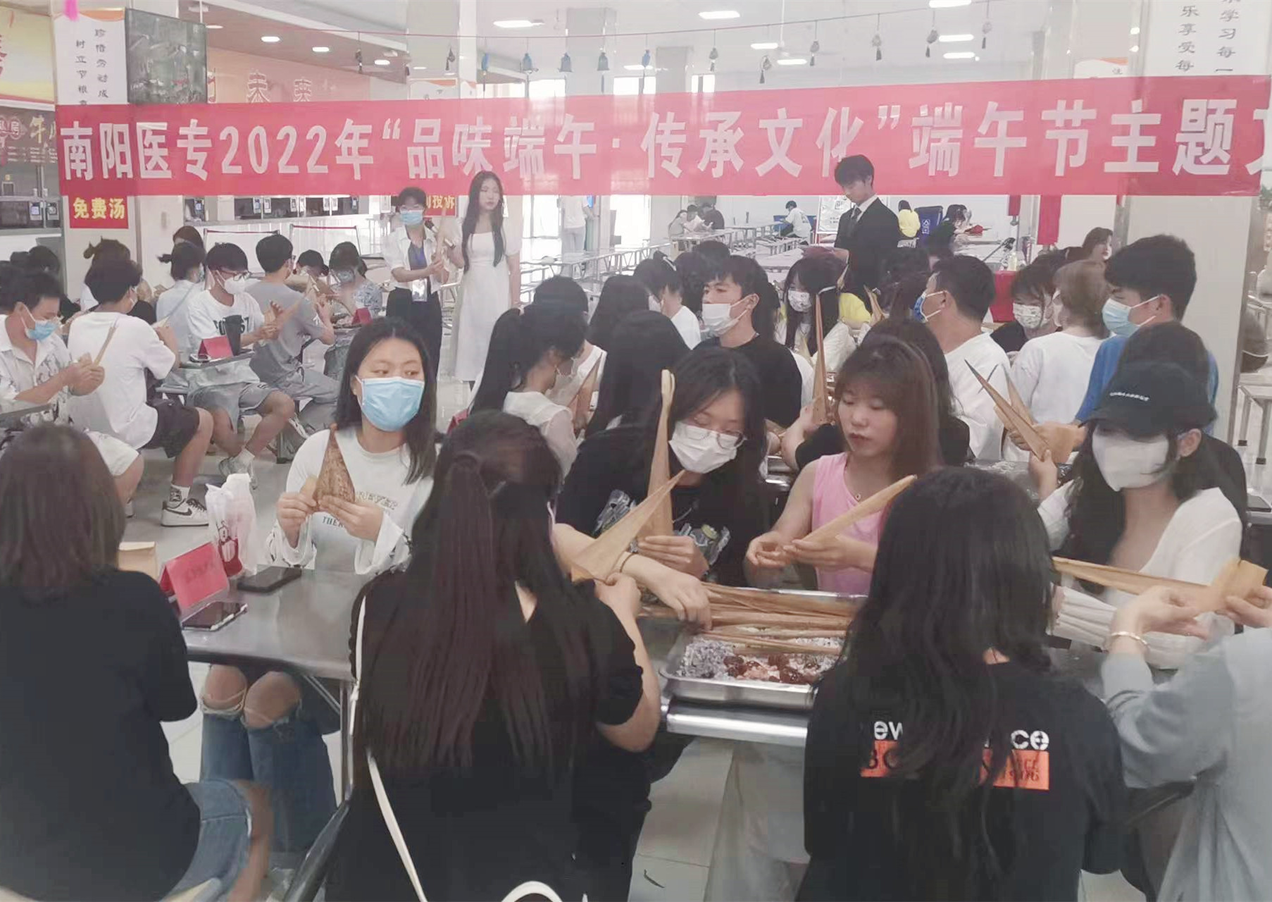 5月25日下午,我校仲景东区餐厅一楼张灯结彩,欢声笑语。来自全校各系部院的十个代表队和药学系领导师生齐聚一堂。现场粽叶舞动,彩绳穿梭。放糯米、卷粽子、填艾草、缝香囊……大家密切配合,有条不紊。只见一双双巧手挥动间,一个个碧绿饱满的粽子、一只只五彩缤纷的香囊温暖出炉,美不胜收。