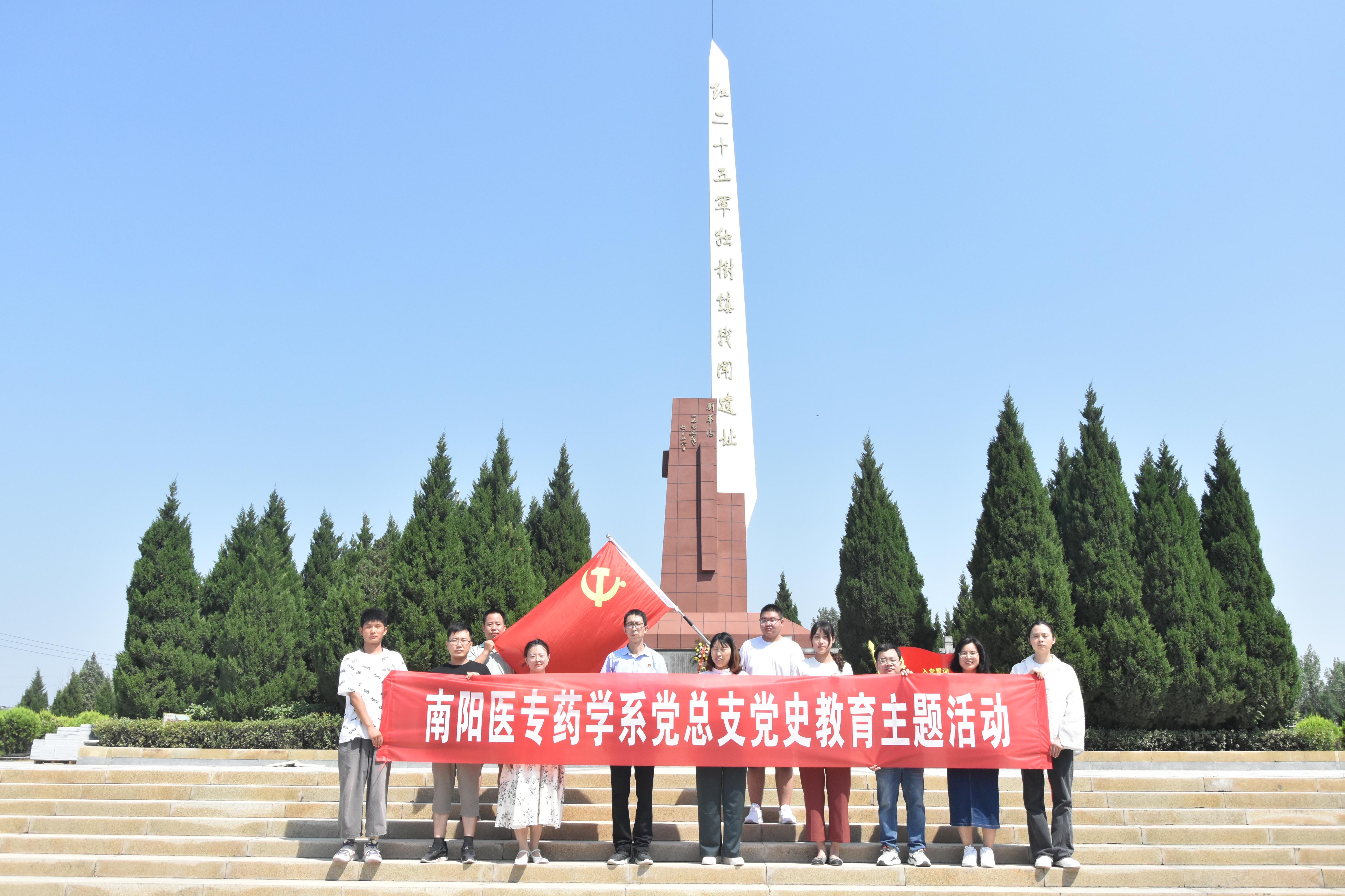 为扎实推进党史学习教育,追寻红色革命足迹,增强党员干部和大学生干事创业的自觉性主动性,2022年6月30日,药学系党总支组织师生党员和入党积极分子,到红二十五军独树镇战斗遗址和杜凤瑞烈士纪念馆开展党史教育主题活动,以实际行动献礼中国共产党建党101周年和香港回归25周年。