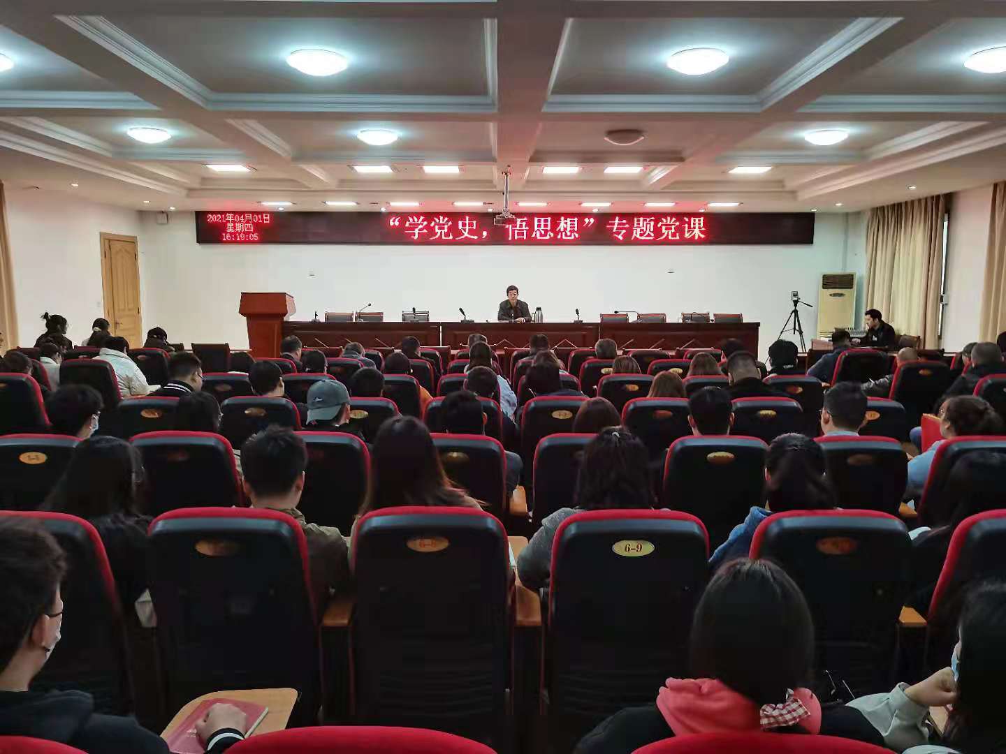 本网讯(文/针灸骨伤系 李明哲)4月1日下午,副校长张国良在1号办公楼五楼会议室作“学党史 悟思想”专题党课。总务处、针灸骨伤系党总支全体党员师生100余人参加学习。