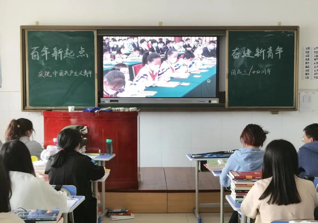 通过观看“庆祝中国共产主义青年团成立一百周年大会”,同学们积极发表感受,交流观看心得,表示将牢记习近平总书记的殷切嘱托,在实现中华民族伟大复兴中国梦的新征程上奋勇前进。