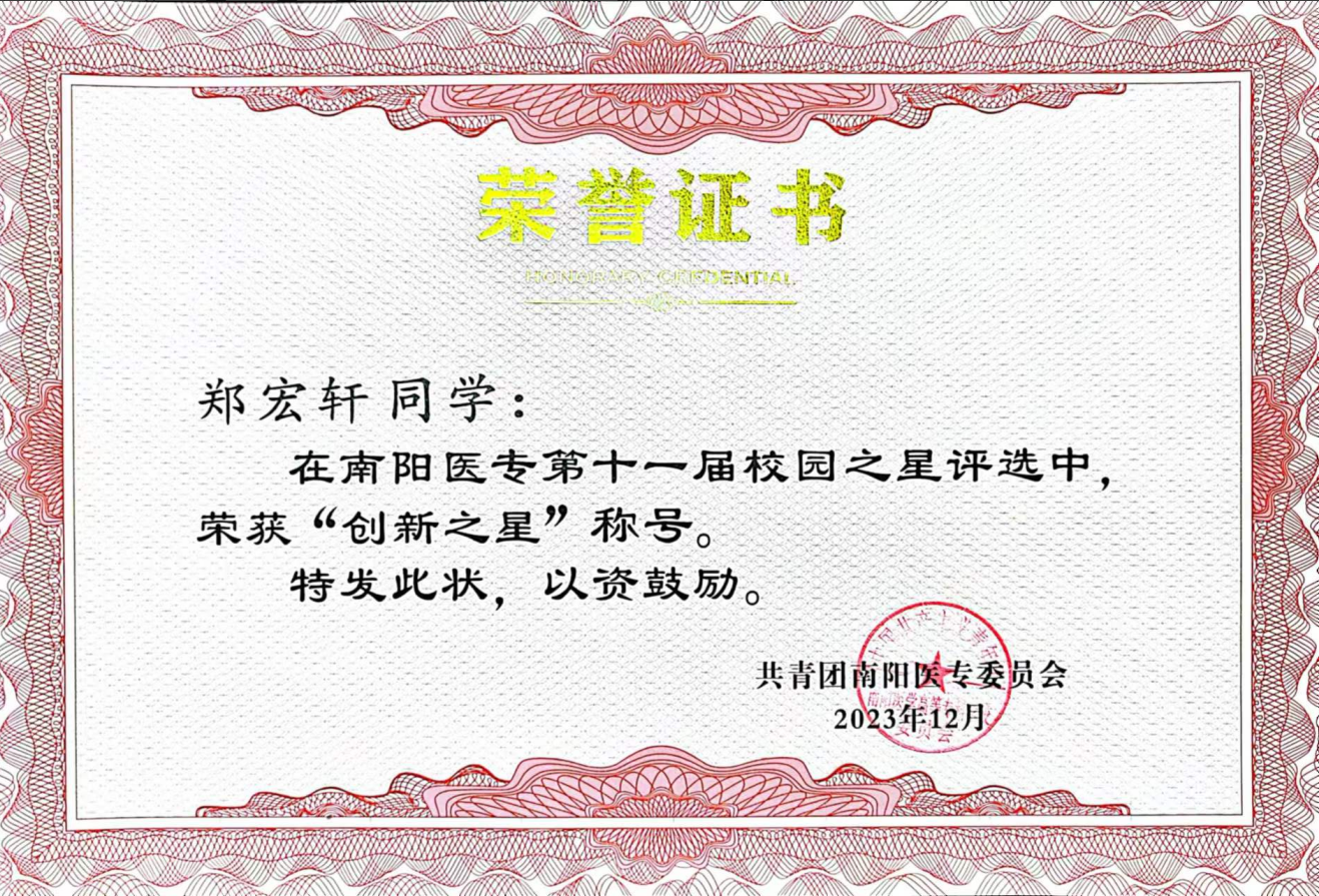 郑宏轩,男,共青团员,南阳医学高等专科学校针灸骨伤系2022级普大针灸推拿二班学生,现担任南阳医专针灸骨伤系学生会主席。