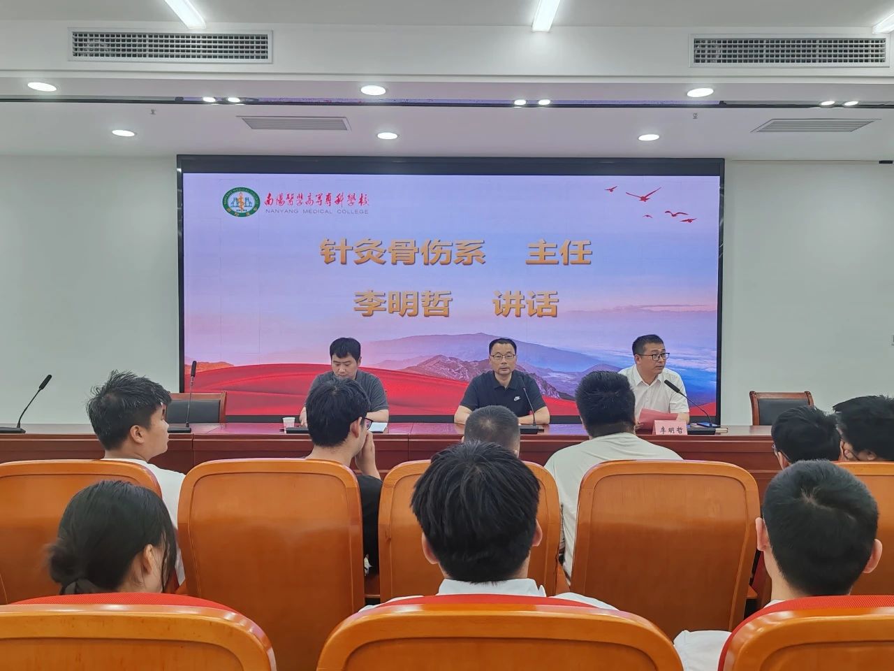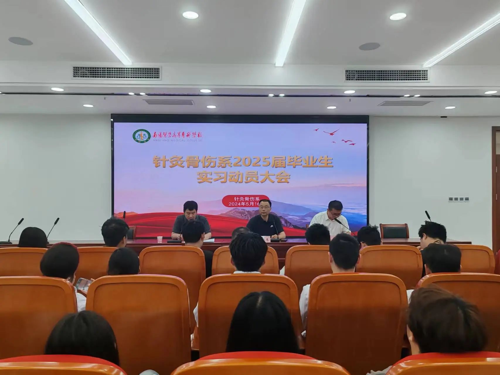 为引导学生树立正确的实习观念,确保实习教学工作顺利开展。5月16日下午,针灸骨伤系在仲景文化中心701会议室召开2025届毕业生实习动员大会,系党总支书记毕跃忠,副主任李明哲,全体行政人员,2025届毕业生班主任、辅导员及全体学生参加此次会议。会议由党总支副书记逵建澍主持。