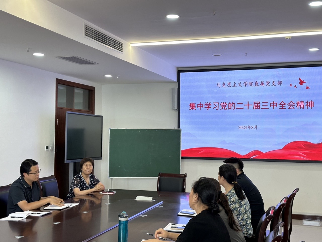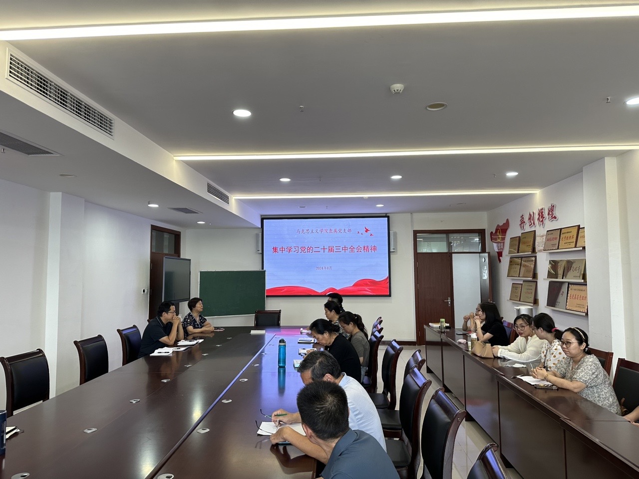 8月28日下午三点,南阳医专马克思主义学院在仲景文化中心520会议室召开支部大会,深入学习贯彻党的二十届三中全会《决定》精神。会议由马克思主义学院院长冯晓青领学,学院副书记雷雨泰主持,全体党员参加了本次学习。