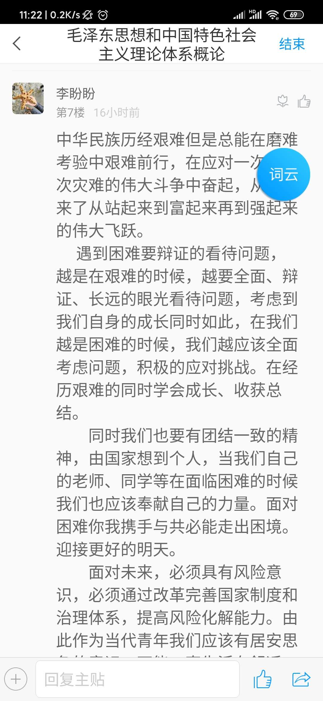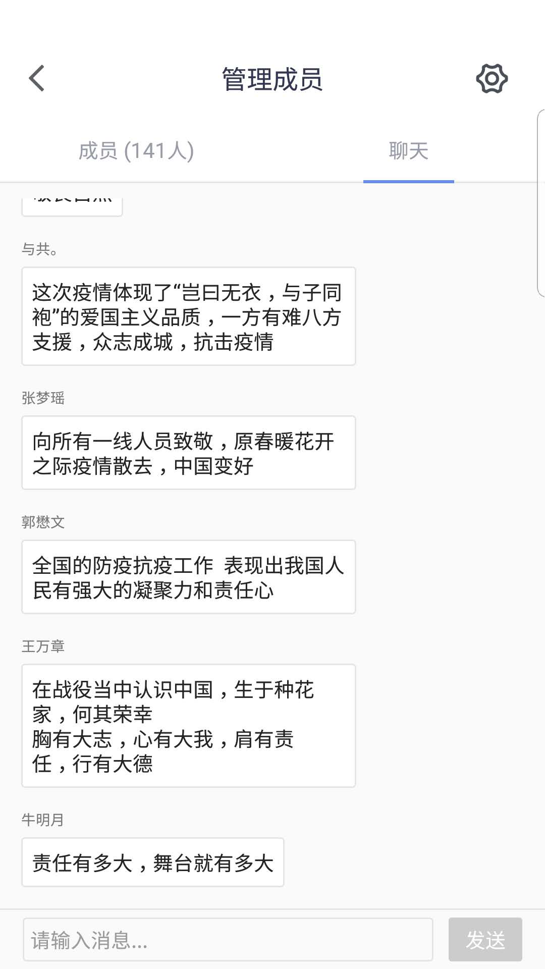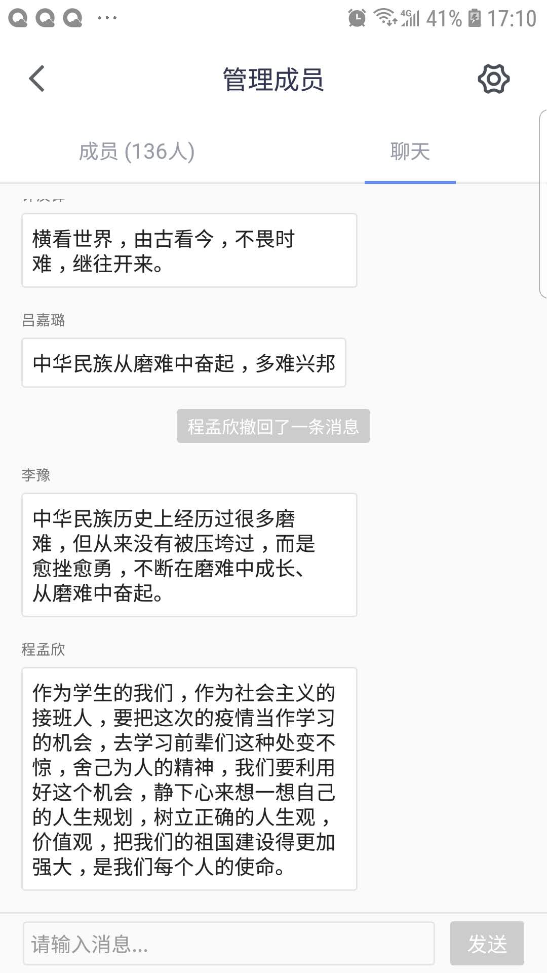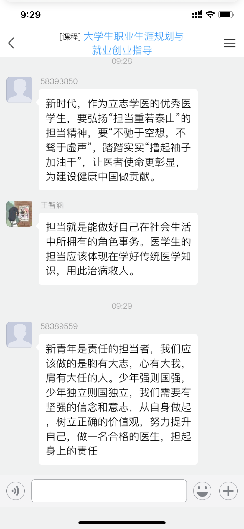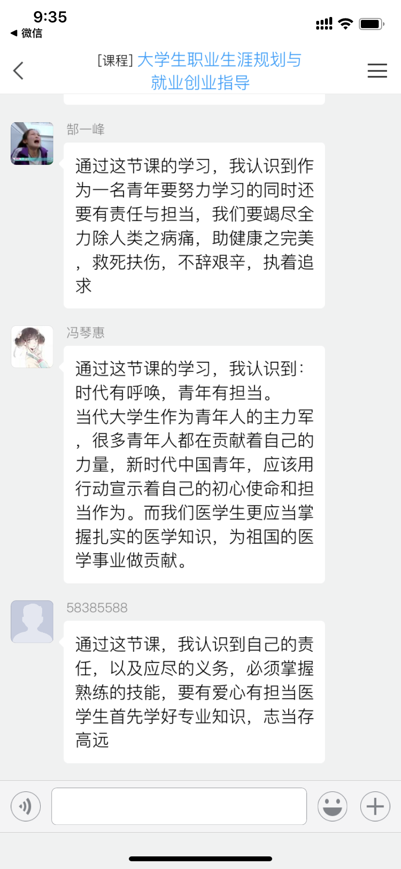 当天的“疫情防控思政大课”听的同学们热泪盈眶、精神振奋,争先恐后发表各自的感想和体会。老师们也被这热烈的讨论场面深深感染,很多年没有组织过这么成功的课堂讨论了,尽管是在线学习讨论,也能深切地感受到同学们激情澎湃的话语所蕴含的当代大学生的责任和担当。