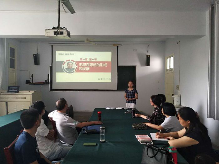 概论教研室青年教师吴佳琦主讲,授课内容是《毛泽东思想和中国特色社会主义理论体系概论》第一章第一节毛泽东思想的形成和发展。吴老师备课认真,教态自然,授课内容丰富,尽可能采用多种教学方式活跃课堂气氛,调动学生学习的积极性。