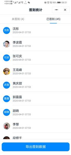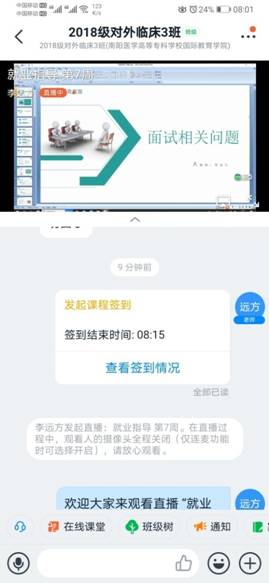 课程中间穿插一些讨论互动,但是直接用直播来替代课堂教学活动,以直播为主获得的效果并不完全理想,这需要后续不断地探索。直播前10分钟,同时开启签到功能,能了解本班同学的出勤率。