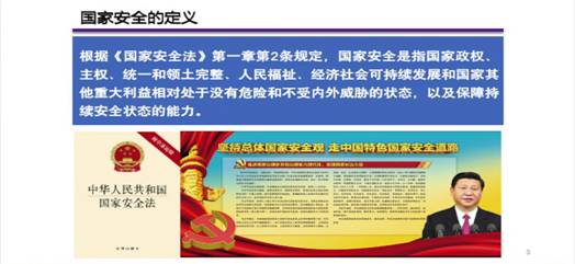 该课程讲述了我国的国家安全发展历程以及国家安全体系,剖析了新形势下国家面临的信息安全、科技安全和文化安全等新型安全风险。此次新冠肺炎疫情让我们深刻认识到生物安全和现代公共卫生安全的重要性。疫情不但威胁人民生命和财产安全,还对我国经济产生了严重影响。因此,新时代新形势不仅要呼唤新的发展观、改革观,还需要新的安全观。