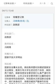 4月15日为我国第五个“全民国家安全教育日”,为进一步增强国家安全意识,树立正确的国家安全观,政教部全体教师在线收看了由教育部组织录制的2020年全民国家安全教育日高校公开课——《总体国家安全观视角下的疫情防控》。