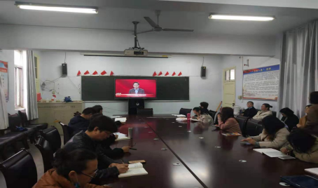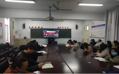 4月24日下午14:00,教育部社科司联合人民网共同举办的首场“同上四史思政大课”活动通过“人民网”微信公众号等公共平台全国直播,南阳医专政教部组织全体专兼职教师在会议室集中收看网络直播。