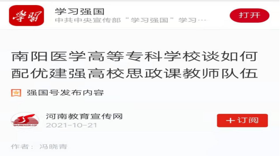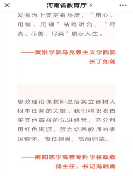 2021年10月20日,我校政治理论教学部主任冯晓青参加了2021年度河南省高校马克思主义学院院长研修班,会议中我校思政课教师队伍建设工作法受到广泛关注,被河南教育宣传网10月21日推送至“学习强国”平台。