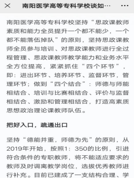 我校党委高度重视思政课师资队伍建设,长期坚持“思政课教师素质和能力全员提升一个都不能少,一个都不能落伍掉队”的原则,坚持思政课教师全员参与培训、对思政课教师进行全过程管理、思政课教师教学能力和业务水平全方位提高,紧紧抓住“四个环节”,即:进出环节、培养环节、监督环节,管理环节;做到“四个结合”:师德与师能相结合、培训与比赛相结合、评价与监督相结合、激励和管理相结合,选优配强打造了一批干事创业、成绩突出的高素质思想政治理论课教师队伍。