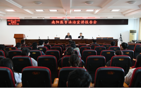 为了深入学习习近平新时代中国特色社会主义思想和党的十九大精神,深入贯彻习近平法治思想,推动依法治教、依法治校和依法办学,不断提升师生法治意识和法治素养,11月12日下午,南阳医专在行政楼5楼会议室举办法治宣讲教育培训会,邀请校政治理论教学部刘一凡老师做专题讲座,各系部辅导员代表和青年马克思主义学院学员参加会议。会议由校党委副书记逵应坤主持。