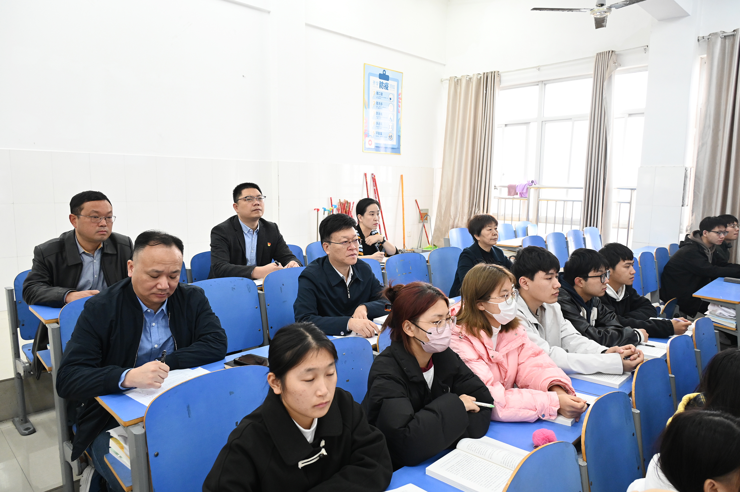 柳明伟认真听取了魏毅和傅晓两位老师讲授的《习近平新时代中国特色社会主义思想概论》课程。柳书记先后在22级国教临床1班听取了魏毅老师讲授的《新时代坚持和发展中国特色社会主义》专题和22级骨伤2班听取了傅晓老师讲授的《以中国式现代化全面推进中华民族伟大复兴》专题。