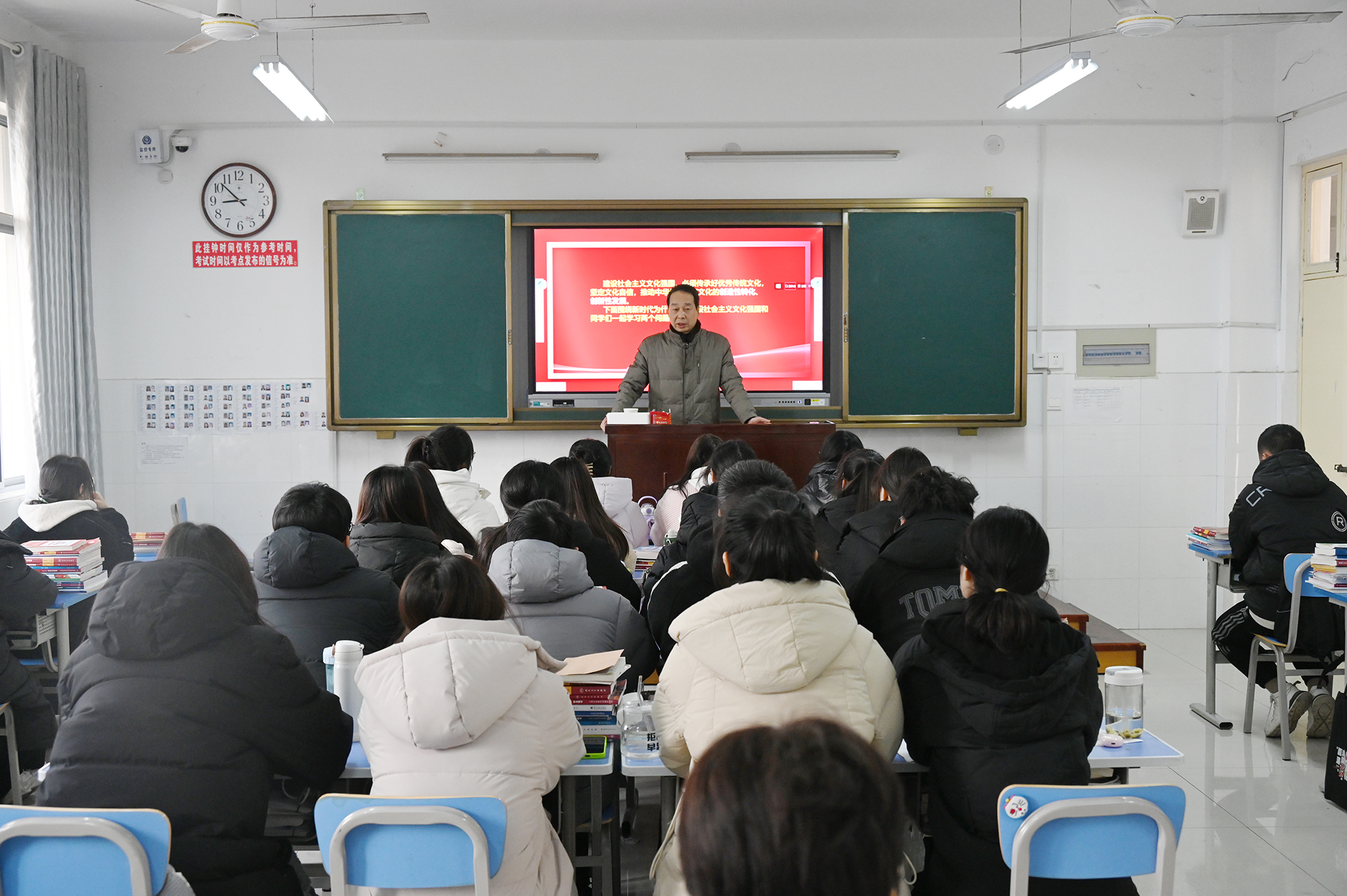 12月26日上午,校党委委员、副校长刘荣志到23级针灸骨伤2班为学生讲授思政课,针灸骨伤系、马院负责同志和部分教师参加。